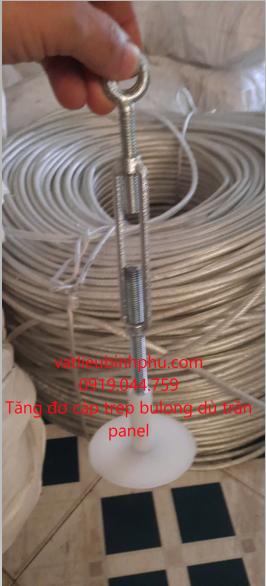 Kết hợp với cáp thép + ốc siết cáp, tăng đơ giúp kéo căng các dây neo và thân bulong dù giúp cho tấm Panel được cố định.